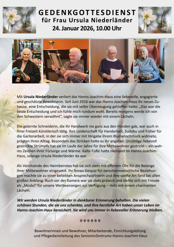 Das Hanns-Joachim-Haus trauert um Ursula Niederländer, † 23.12.25