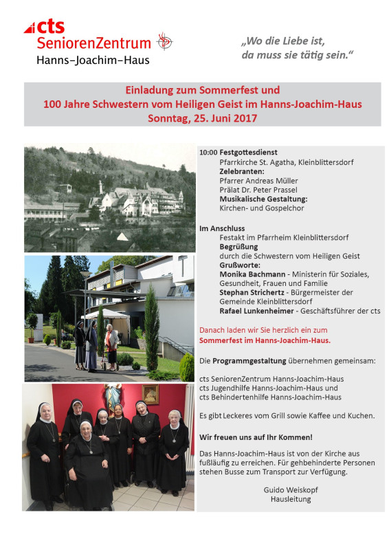 100 Jahre Schwestern vom Heiligen Geist im Hanns-Joachim-Haus am Sonntag, 25. Juni 2017